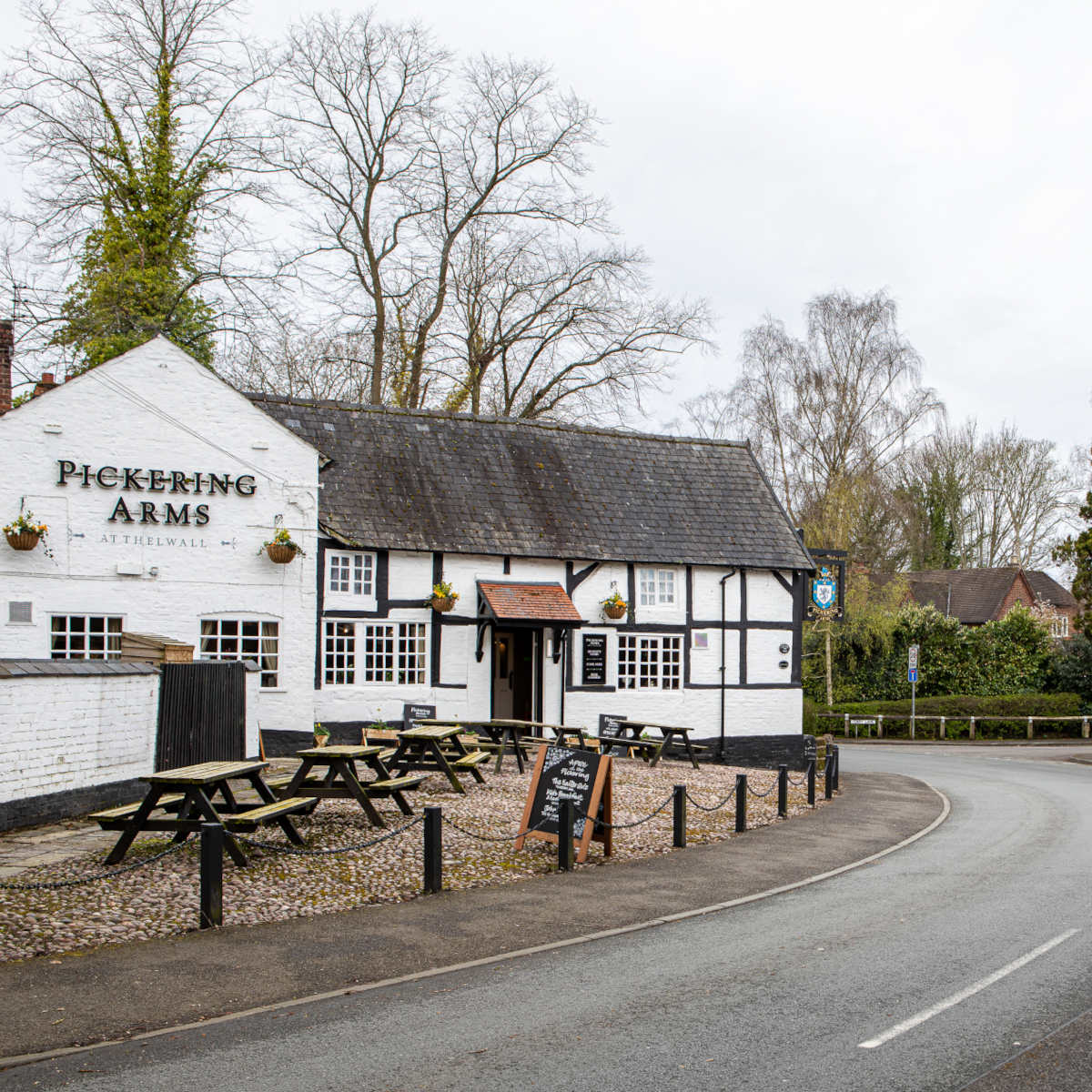 Nestled on the outskirts of Warrington along the Manchester Ship Canal in the picturesque village of Thelwell, the Pickering Arms is the perfect country escape for both locals and visitors alike. Our traditional pub offers old world rustic charm, fused with cosy corners and alfresco dining to enjoy with the whole family.